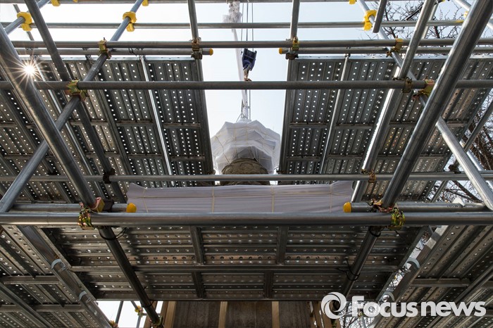 (서울=포커스뉴스) 22일 오후 서울 경복궁 국립고궁박물관 앞뜰에 해체를 앞둔 국보 제101호 법천사지 지광국사탑이 보이고 있다.