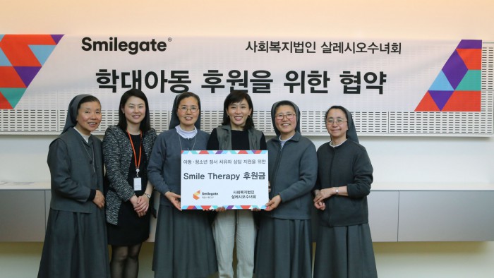 (서울=포커스뉴스) 스마일게이트 희망스튜디오(이사장 권혁빈, 이하 희망스튜디오)은 사회복지법인 살레시오수녀회(이사장 최주영)와 후원 협약을 체결하고, 가정폭력 피해 아동 및 청소년들의 보호와 치유에 동참한다고 23일 밝혔다.