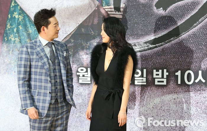 (서울=포커스뉴스) 24일 오후 서울 양천구 SBS 목동사옥에서 열린 월화드라마 '대박' 제작발표회에 참석한 배우 전광렬(왼쪽)과 윤진서가 포토타임을 갖고 있다.