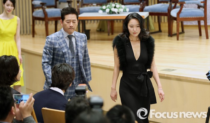 (서울=포커스뉴스) 24일 오후 서울 양천구 SBS 목동사옥에서 열린 월화드라마 '대박' 제작발표회에 배우 윤진서(오른쪽)가 참석하고 있다.