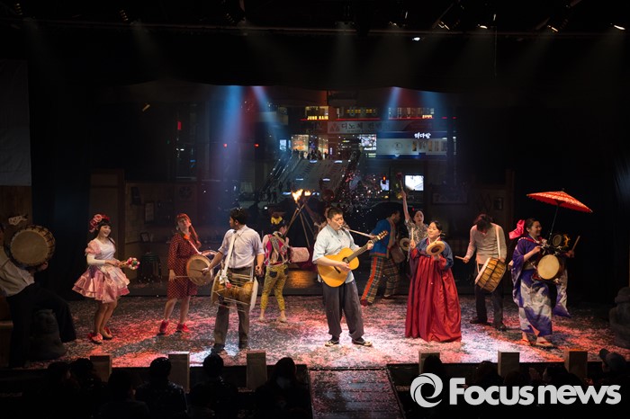 (서울=포커스뉴스) 24일 오후 서울 왕십릭역 광장 특설무대에 설치된 텐트극장에서 한·일 연극 공동 프로젝트 일환으로 열린 '백년, 바람의 동료들' 연극에서 일본극단 신주쿠양산박 단원들이 멋진 무대를 선보이고 있다.
