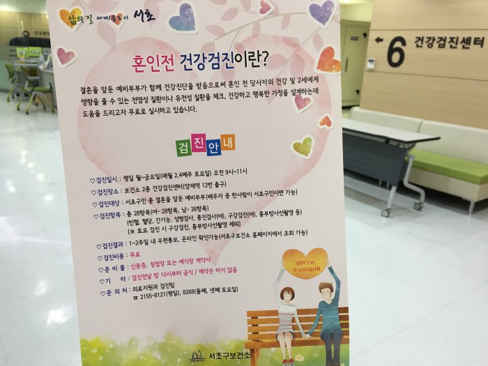 서초구에 따르면 예비부부 중 한명이라도 서초구 주민일 경우 무료로 검사를 받을 수 있다.