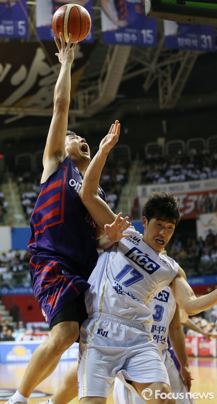 (고양=포커스뉴스) 25일 고양체육관에서 열린 2015-2016 프로농구 챔피언결정전 4차전 오리온-KCC경기에서 오리온 김동욱이 드라이브인 슛을 시도하다 KCC 신명호와 충돌하고 있다.