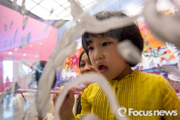 (서울=포커스뉴스) 28일 오전 서울 송파구 롯데백화점 잠실점 에비뉴엘 아트홀에서 열린 '러블리 레테' 전시회에서 프랑스 작가 나탈리 레테가 어린이들과 라이브페인팅을 하고 있다.