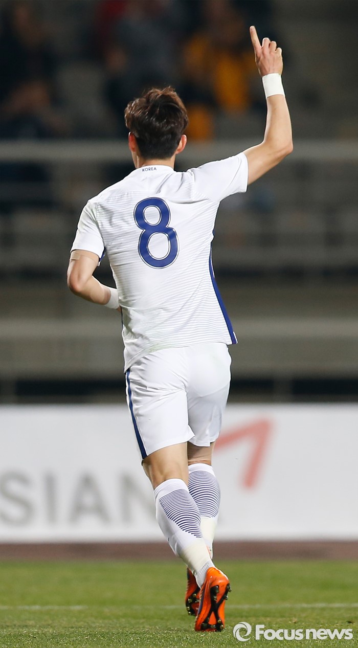 (고양=포커스뉴스) 28일 오후 경기 고양종합운동장에서 열린 올림픽축구대표팀 2차 평가전 대한민국과 알제리의 경기에서 한국 이창민이 선제골을 넣고 세리머니를 하고 있다.