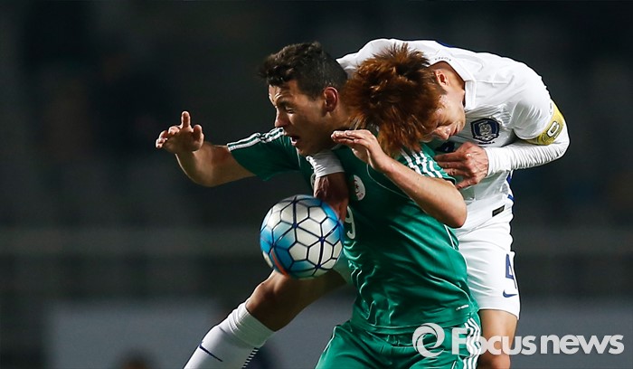 (고양=포커스뉴스) 28일 오후 경기 고양종합운동장에서 열린 올림픽축구대표팀 2차 평가전 대한민국과 알제리의 경기에서 한국 송주훈과 알제리 오사마가 볼을 다투고 있다.