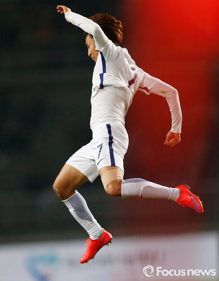 (고양=포커스뉴스) 28일 오후 경기 고양종합운동장에서 열린 올림픽축구대표팀 2차 평가전 대한민국과 알제리의 경기에서 한국 문창진이 후반전 추가골을 넣고 세리머니를 하고 있다.