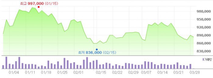 그는 "다만 매출 비중이 약 40%에 달하는 육가공 제품군에서는 낮아진 원가 덕분에 향후 수익성 개선의 여력이 충분하다"고 진단했다.최근 3개월간 롯데푸드 주가 추이 <그래픽출처=네이버>