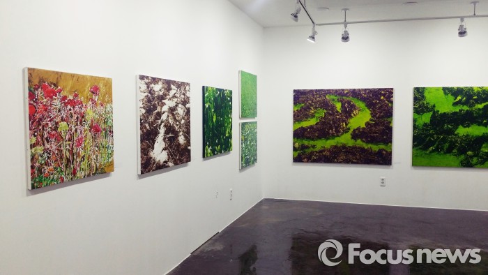 이 작가는 "어떤 원인이 있으면 반드시 그걸로 드러난 것들이 있다.논을 그리더라도 일반적으로 보여지는 논이 아니라 눌려진 상태와 드러난 부분들을 담는다"면서 "다른 소재를 그린다고 하더라도 공통적으로 그 현상이 모든 그림에 다 나타난다"고 설명했다.