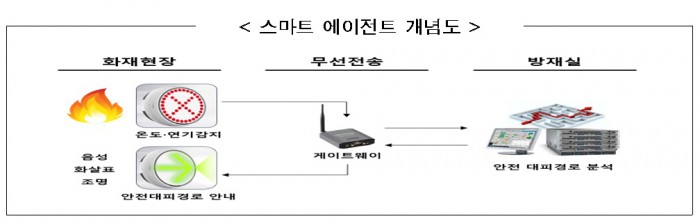 스마트 에이전트는 벤처기업 코너스톤즈테크놀러지가 지난해 개발한 것으로, 서버에서 화재 정보를 수집한 후 상황별로 최적화된 대피경로를 피난자에게 음성, 방향지시, 조명으로 안내해주는 사물인터넷(IoT) 기반 신개념 화재대피 유도 시스템이다.