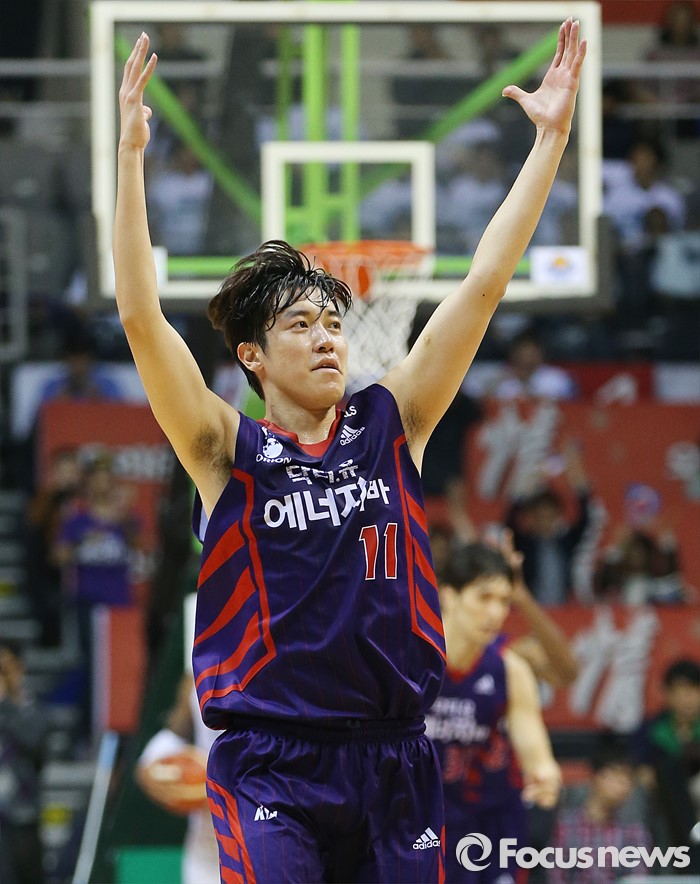 (고양=포커스뉴스) 29일 고양체육관에서 열린 2015-2016 프로농구 챔피언결정전 6차전 오리온-KCC 경기에서 오리온 허일영이 3점슛을 성공시킨후 관중들의 환호에 두손을 들어 답하고 있다.