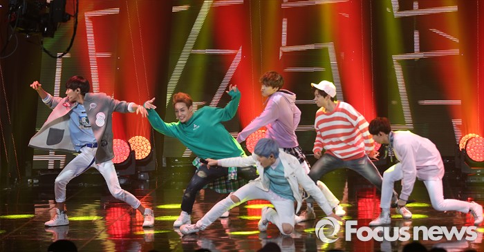(서울=포커스뉴스) 29일 오후 서울 마포구 SBS프리즘 타워에서 열린 2016 '더쇼' 생방송에 참여한 아이돌그룹 JJCC의 멤버들이 '오늘 한번' 의 무대를 선보이고 있다.