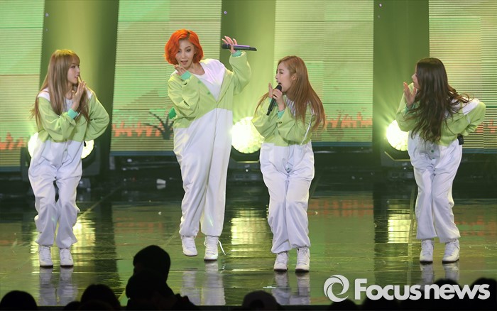 (서울=포커스뉴스) 29일 오후 서울 마포구 SBS프리즘 타워에서 열린 2016 '더쇼' 생방송에 참여한 걸그룹 마마무의 멤버 멤버들이 '넌 is 뭔들'의 무대를 선보이고 있다.