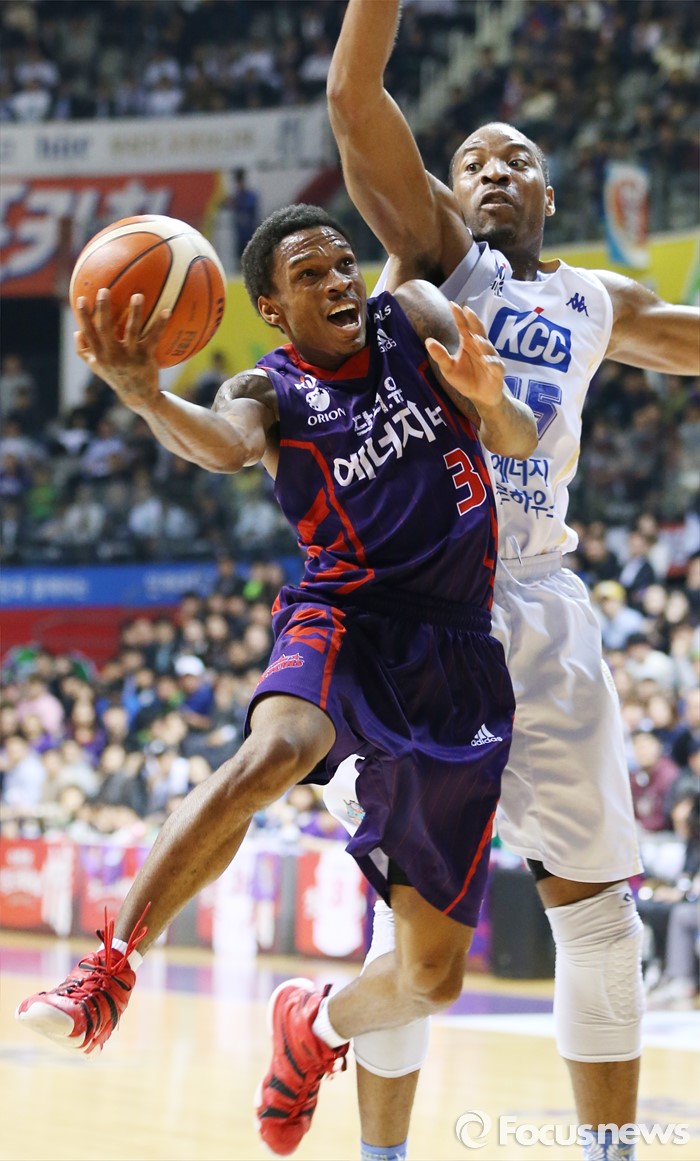 (고양=포커스뉴스) 29일 고양체육관에서 열린 2015-2016 프로농구 챔피언결정전 6차전 오리온-KCC 경기에서 오리온 조 잭슨이 KCC 허버트 힐의 수비를 뚫으며 레이업슛을 시도하고 있다.