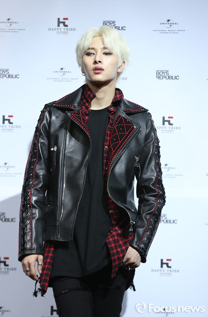 (서울=포커스뉴스) 30일 오후 서울 마포구 예스24 무브홀에서 열린 아이돌그룹 소년공화국의 세번째 미니앨범 [BR: evolution] 발표 쇼케이스에 참석한 멤버 민수가 포토타임을 갖고 있다.
