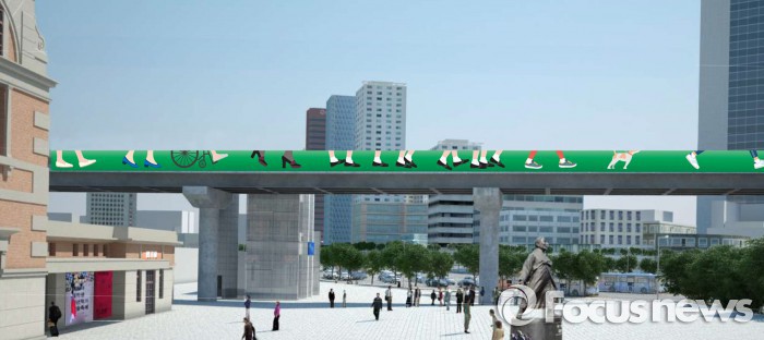 (서울=포커스뉴스) 2017년 4월 차량이 다니던 길에서 사람이 다니는 길로 '변신'할 서울역고가 공사장 가림벽에 젊은 디자이너의 '예술'이 더해진다.