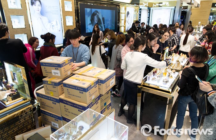 (서울=포커스뉴스) 31일 오후 서울 용산구 신라아이파크면세점을 찾은 중국 아오란 그룹 임직원들이 쇼핑을 하고 있다.