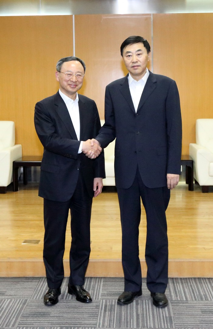 황창규 KT 회장은 “KT와 차이나모바일은 적극적이면서도 지속적인 협력을 통해 동북아를 넘어 글로벌 통신시장을 주도하는 역할을 수행하겠다”고 말했다.황창규 KT 회장(왼쪽)과 샹빙 차이나모바일 회장이 기념촬영을 하고 있다.<사진제공=KT>