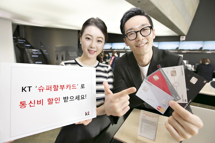 (서울=포커스뉴스) KT는 1일 현대카드, KB국민카드, 우리카드, 신한카드와 제휴해 통신비 할인과 부가 혜택을 제공하는 ‘슈퍼할부카드’를 출시했다.