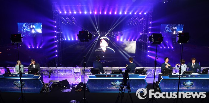 (서울=포커스뉴스) 1일 오전 서울 송파구 올림픽공원 올림픽홀에서 열린 '2016 히어로즈 오브 더 스톰 스프링 챔피언십'에 참여한 각국 중계진이 관련 준비를 하고 있다.