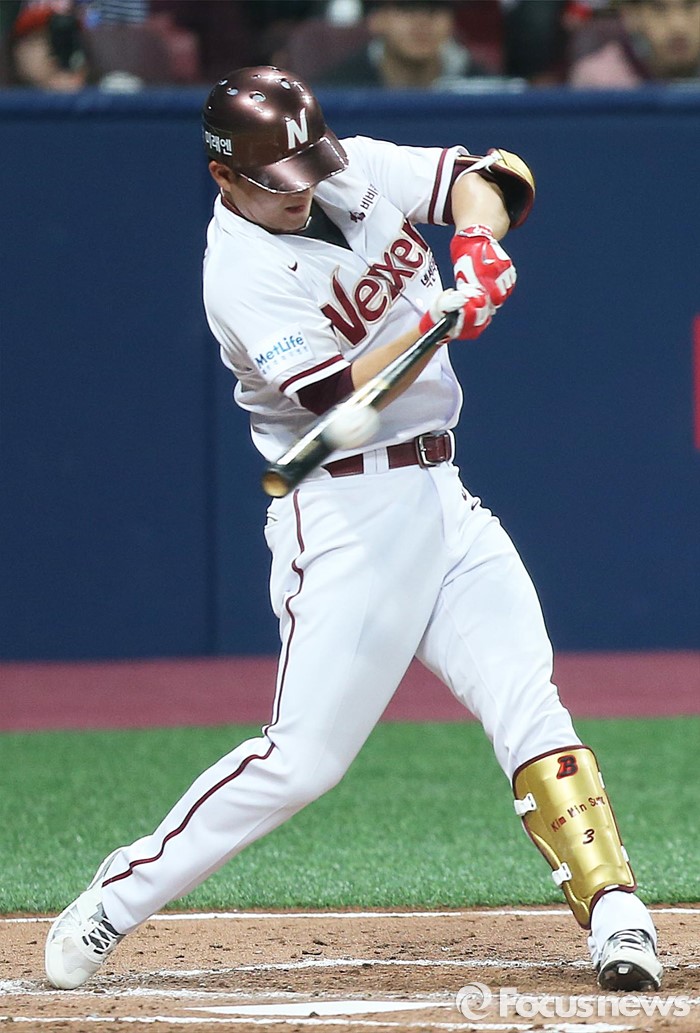 (서울=포커스뉴스) 1일 오후 서울 구로구 고척스카이돔에서 열린 2016 타이어뱅크 프로야구 개막전 넥센 히어로즈와 롯데 자이언츠의 경기에서 2회말 무사 넥센 김민성이 파울을 치고 있다.