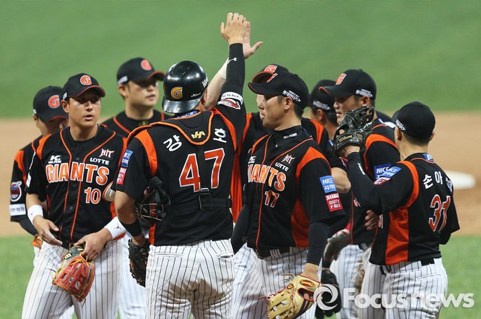 | △ 환호하는 롯데 자이언츠 선수들 |