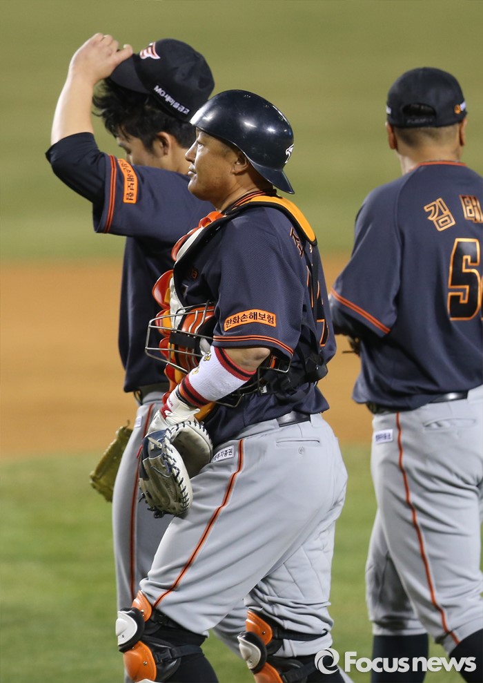 | △ 쓸쓸히 퇴장하는 한화 배터리 |
