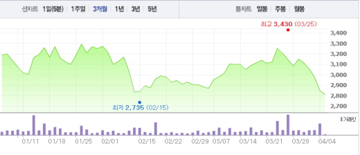 5일 오전 9시18분 현재 MPK는 전일 대비 1.4%(40원) 하락한 2810원에 거래되고 있다. 전날에도 MPK의 주가는 4.36%의 하락폭을 기록했다.