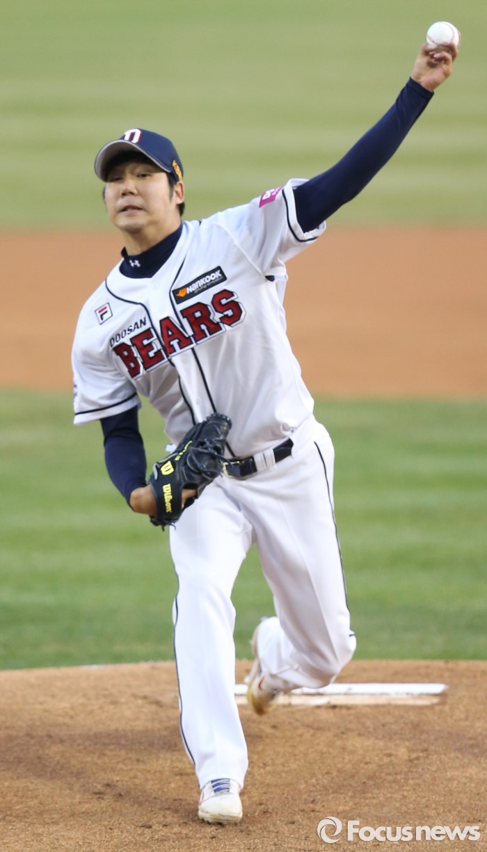 (서울=포커스뉴스) 5일 서울 잠실구장에서 열린 2016프로야구 NC-두산 경기에서 1회초 두산 선발투수 장원준이 투구하고 있다.