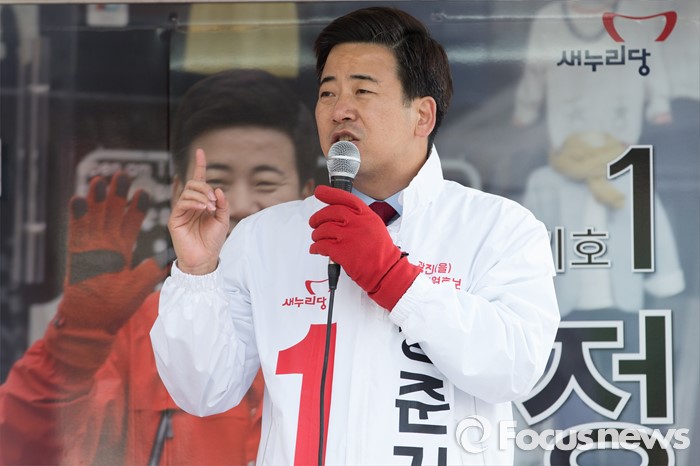 (서울=포커스뉴스) 20대 총선에 출마한 정준길 새누리당 광진을 후보가 5일 오후 서울 건대입구역 인근에서 유권자들에게 지지를 호소하고 있다.