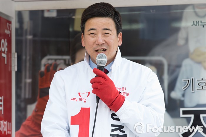 (서울=포커스뉴스) 20대 총선에 출마한 정준길 새누리당 광진을 후보가 5일 오후 서울 건대입구역 인근에서 유권자들에게 지지를 호소하고 있다.