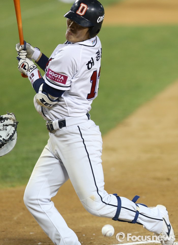 | △ 몸에 볼 맞는 허경민 |