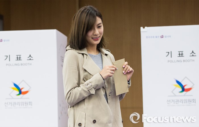 (서울=포커스뉴스) 에이핑크 오하영이 8일 오전 서울 마포구 서교동 주민센터에서 제 20대 총선 사전 투표를 하기 위해 기표소에 입장하고 있다.