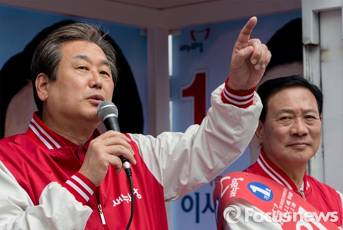 (부천=포커스뉴스) 8일 오후 경기 부천시 역곡역 인근에서 이사철 새누리당 부천원미을 후보 지원유세에서 나선 김무성 대표가 유권자들의 지지를 호소하고 있다.