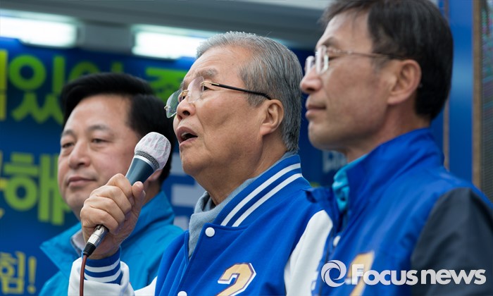 (김포=포커스뉴스) 김종인(가운데) 더불어민주당 비대위 대표 겸 선대위원장이 8일 오후 경기 김포 장기사거리에서 김두관(왼쪽) 김포시갑 후보와 정하영(오른쪽) 김포시을 후보 합동지원유세를 하고 있다.