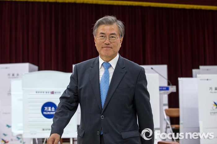(광주=포커스뉴스) 문재인 더불어민주당 전 대표가 8일 오후 광주광역시 북구청에 마련된 사전투표소에서 투표를 마친 뒤 월곡시장 상인들을 만나기 위해 이동하고 있다.