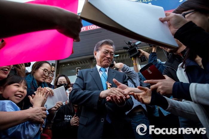 퐁광주=포커스뉴스) 문재인 더불어민주당 전 대표가 8일 오후 광주광역시 광산구 월곡시장을 방문해 시민들과 악수 하고 있다.