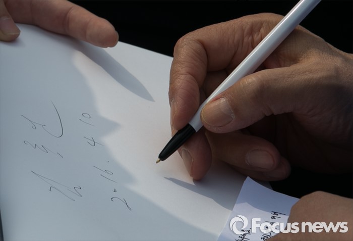 | △ 사인하는 김종인 |