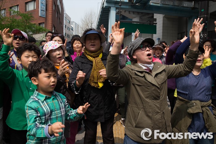 (서울=포커스뉴스) 20대 총선을 3일 앞둔 10일 오후 서울 성동구 옥수역 인근에서 유권자들이 정호준 국민의당 중구성동을 후보측에게 지지를 표하고 있다.