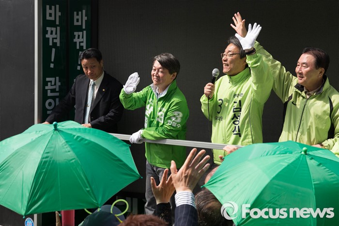 (서울=포커스뉴스) 20대 총선을 3일 앞둔 10일 오후 서울 관악구 관악프라자 인근에서 안철수 국민의당 공동대표가 김성식 관악구갑 후보 지원유세를 하고 있다.