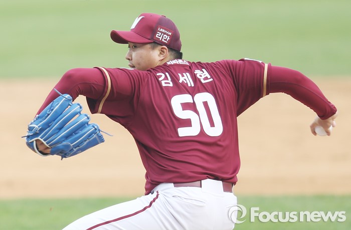 (서울=포커스뉴스) 10일 서울 잠실구장에서 열린 2016 프로야구 넥센-두산 경기에서 넥센 김세현이 9회말 1점차 승리를 지키기 위해 등판해 투구하고 있다.