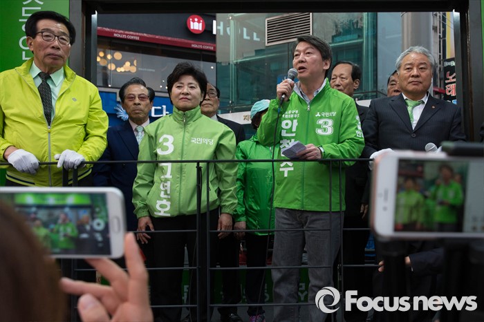 (서울=포커스뉴스) 20대 총선을 사흘 앞둔 10일 오후 서울 은평구 불광역 인근에서 안철수 국민의당 공동대표가 고연호 은평구을 후보와 합동유세를 하고 있다.