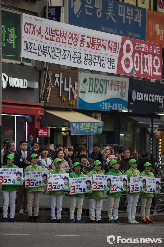 (서울=포커스뉴스) 20대 총선을 사흘 앞둔 10일 오후 서울 은평구 불광역 인근에서 고연호 국민의당 은평구을 후보측이 선거운동을 하고 있다.