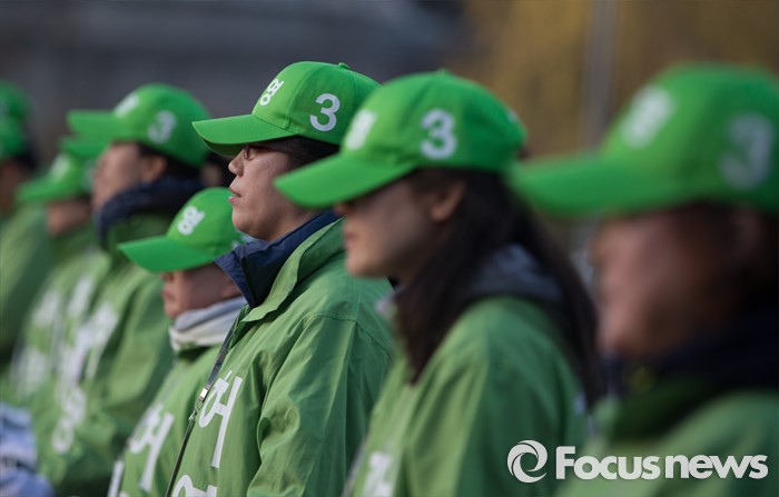 (인천=포커스뉴스) 국민의당 선거운동원들이 11일 아침 인천시 서구 검암역에서 국민의당 합동 출근인사를 하고 있다.