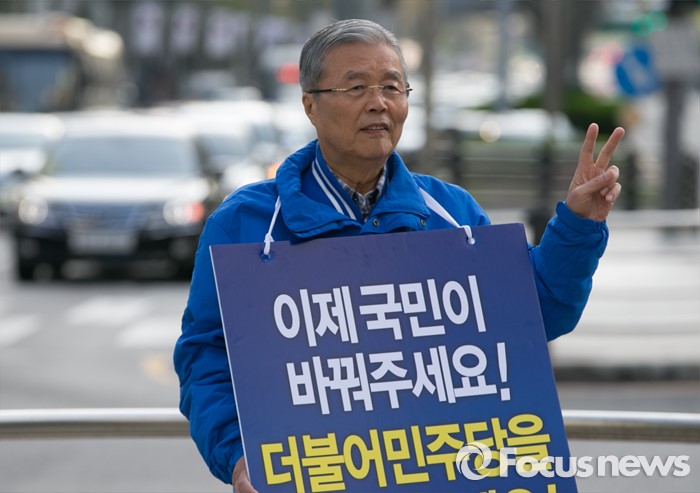 (서울=포커스뉴스) 20대 총선을 이틀 앞둔 11일 오전 서울 지하철 선릉역 인근 사거리에서 김종인 더불어민주당 비대위 대표 겸 선대위원장이 투표독려 캠페인을 하고 있다.