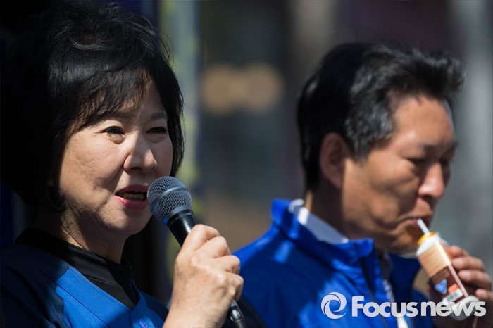 (서울=포커스뉴스) 20대 총선을 이틀 앞둔 11일 오후 서울 마포구 망원시장 일대에서 손혜원 더불어민주당 마포구을 후보가 가수 이은미와 정청래 의원과 함께 선거유세를 하고 있다.