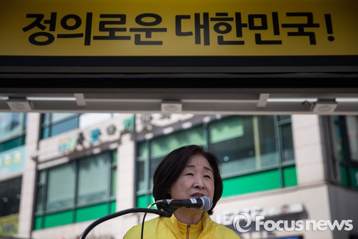 (고양=포커스뉴스) 11일 오후 경기도 고양시 덕양구 세이브존 쇼핑몰 앞에서 심상정 정의당 후보가 시민들을 향해 한 표를 호소하고 있다.