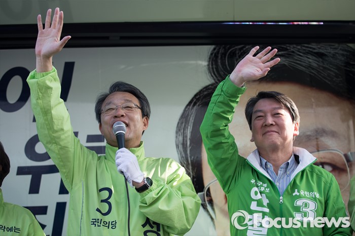 (서울=포커스뉴스) 안철수 국민의당 상임공동대표가 11일 오후 서울 관악구 롯데백화점 앞에서 김성식 관악갑 후보 지원 유세를 하고 있다.