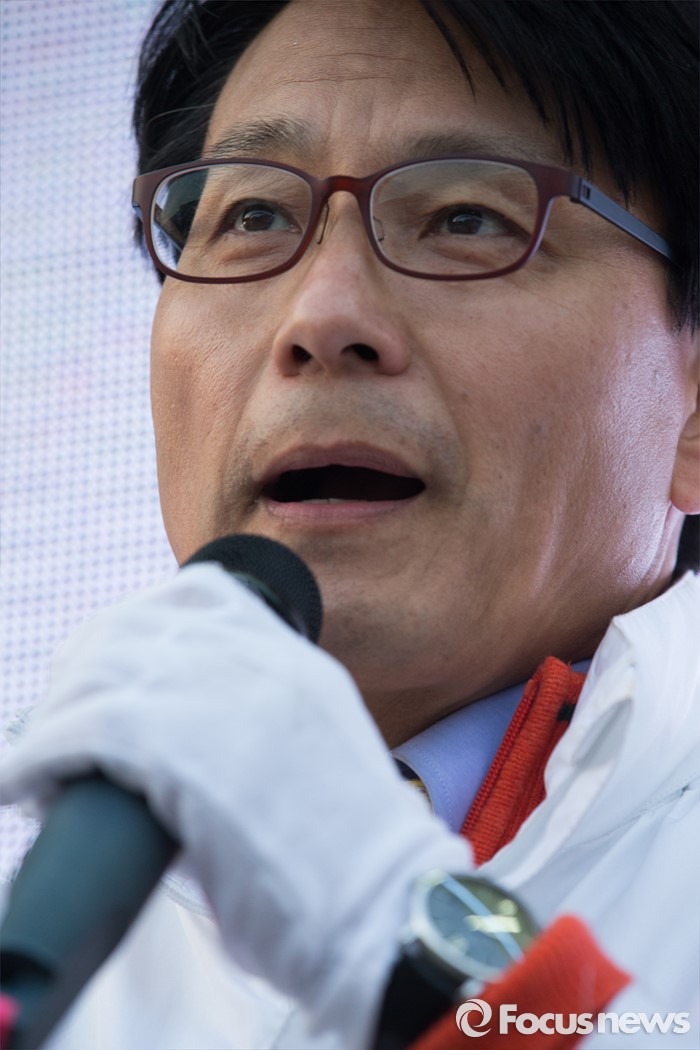 (인천=포커스뉴스) 20대 총선을 이틀 앞둔 11일 오후 인천 남구 제물포역 앞에서 윤상현 무소속 남구을 후보가 유권자에게 지지호소 하고 있다.