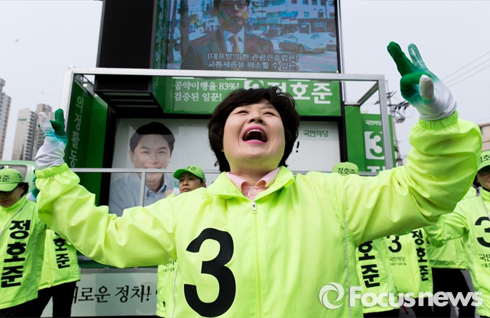 (서울=포커스뉴스) 12일 오전 서울 성동구 금장시장 앞에서 정호준 중구성동구을 후보 선거운동원들이 지지를 호소하고 있다.